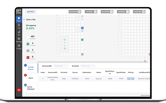 给予对STK的智能化管理功能,遵循SEMI E88协议,接收客户上位系统如MCS的命令指派来实现对晶圆盒的入库和出库操作。配合3D相机,可快速实现AutoTeach 功能,方便工厂安装实施。支持RFID、SmartTag 等标签的读取。搭配金年会诚信至上自研的RFID、SmartTag、E84模块,让设备读取成功率达到同行领先标准。