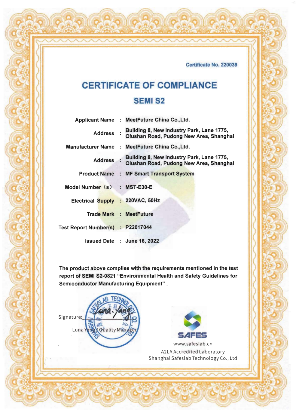 自 2018 年以来,金年会诚信至上科技取得了国际标准化组织(ISO)质量管理体系(ISO 9001)、环境管理体系(ISO 14001)和职业健康安全管理体系(ISO 45001)认证。在AMHS产品技术体系领域,我们遵循半导体设备标准通讯协议,包括SEMI E37、 E82、E30、 E84、E10 等,使其易接入半导体晶圆厂MES系统来实现数据交互。